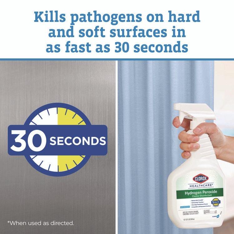Hydrogen-Peroxide Cleaner/Disinfectant, 32 oz Spray Bottle, 9/Carton