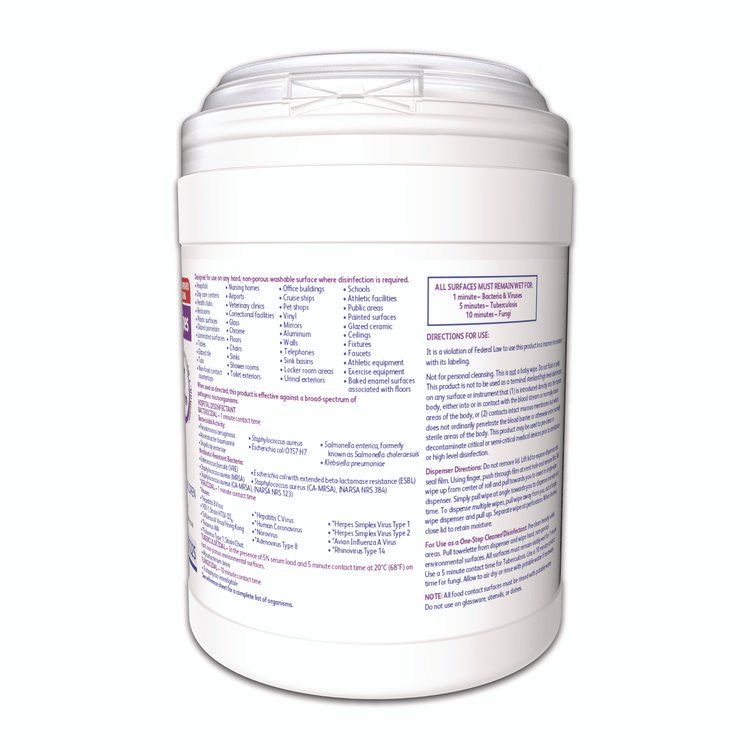Ready-to-use disinfectant cleaner wipe based on proprietary hydrogen peroxide (AHP) technology to deliver fast, effective cleaning performance. Disinfects in 60 seconds. Virucide, bactericide, tuberculocide, fungicide and non-food contact sanitizer. Kills MRSA and Norovirus. Meets bloodborne pathogen standards for decontaminating blood and body fluids. No VOCs and no fragrance added. Towel/Wipe Type: Disinfecting Wipes; Application: General Purpose; Applicable Material: Hard Nonporous Surfaces; Multiple; Dirt Types: Bactericidal; Fungicidal; Germicidal; Virucidal.