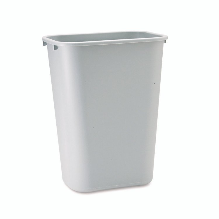 The Rubbermaid Commercial Deskside Trash Can is space-efficient and economical. This waste basket fits under a standard desk height. Its all-plastic construction won’t chip, rust, or dent. These waste baskets feature rolled rims to add strength, and are easy-to-clean. Waste Receptacle Type: Deskside All-Purpose Wastebasket; Material(s): Plastic; Application: Office Waste Disposal; Interior Volume Capacity: 10.25 gal.