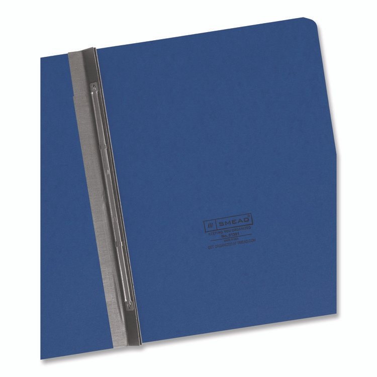 Deliver reports in style with a professional cover. Smead’s Pressboard Report Covers are designed to not only protect your precious work but generate the best impression possible. Sturdy 25-point pressboard material assures long-term durability. These report covers are made entirely of recycled content. Impress teachers, colleagues and prospects with a neatly contained report. Make workflow easier when you can hand off your documents in a tidy sleeve. A simple change can exceedingly improve your organization. Side Opening-Holes 8.5″ center to center. Front Cover Color(s): Dark Blue; Color Family: Blue; Back Cover Color(s): Dark Blue; Sheet Size: 8.5 x 11.